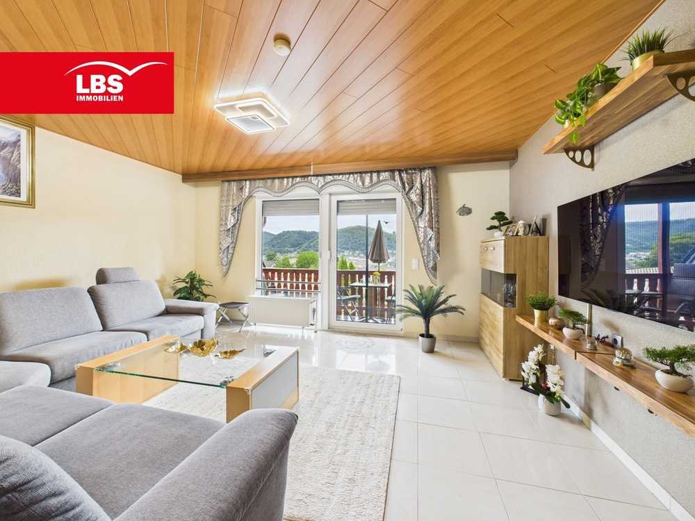 Im Erdgeschoss empfängt Sie eine helle Diele, die direkt in den Lebensmittelpunkt des Hauses führt: das großzügige Wohnzimmer mit Balkon und einem traumhaften Blick über das gesamte Tal. Ob gemütliche Abende oder gesellige Runden – hier fühlen Sie sich sofort zuhause.