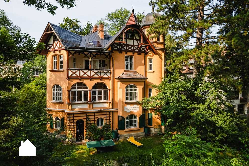 Um 1905 errichtet und reich verziert mit Fachwerkelementen, Schwebegiebel, Erker und einem charakteristischen Halbwalmdach zeugt diese denkmalgeschützte Villa von der kulturellen und architektonischen Blütezeit Bayreuths. Besonders das original erhaltene Jugendstil-Treppenhaus sowie die Deckenmalereien verleihen dem Haus eine unverwechselbare Aura.