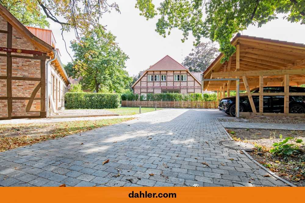 * luxuriös konzipierte Kombination aus traditioneller Klinkerfassade mit Fachwerk und modernen Ausstattungselementen