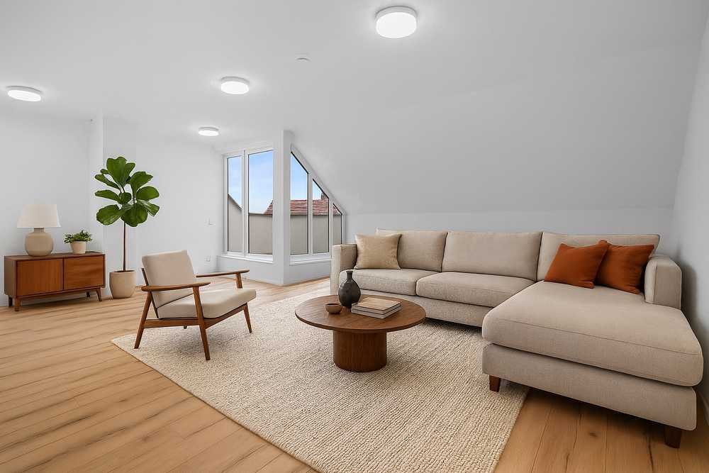 Das Herzstück der Wohnung ist das lichtdurchflutete, geräumige Wohnzimmer – ideal zum Entspannen und Genießen. Von hier aus gelangen Sie direkt auf die schöne Loggia, die mit einem herrlichen Ausblick zum Verweilen einlädt.
