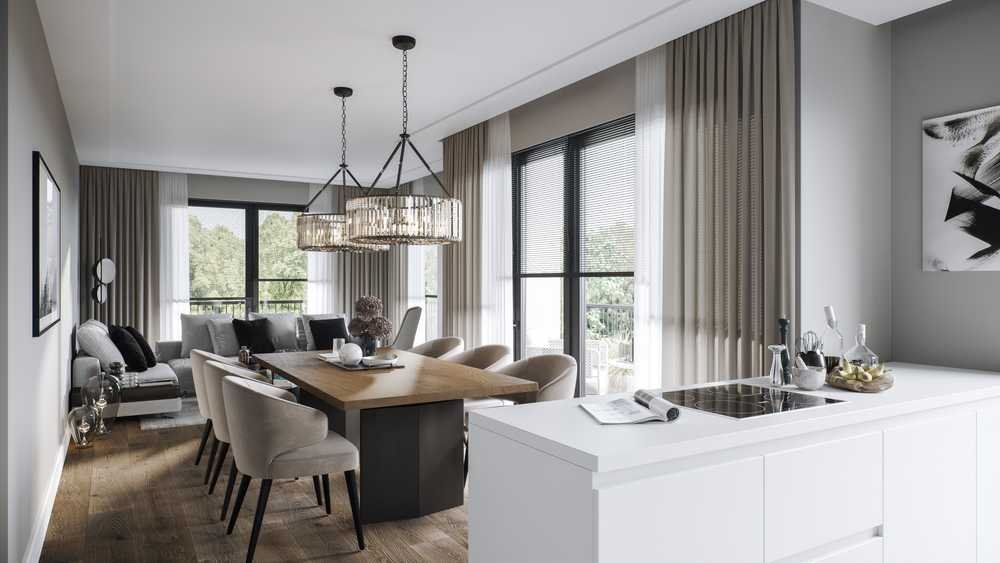 Barrierefrei gelangen Sie in Ihre rund 120 m² große Wohnung, verteilt auf drei lichtdurchflutete Zimmer mit durchdachter Raumstruktur. Der offen gestaltete Wohn-, Koch- und Essbereich mit über 40 m² bietet Raum für Begegnung und Genuss – perfekt für gesellige Stunden mit Familie und Freunden. Großflächige Fensterelemente sorgen für eine beeindruckende Lichtstimmung und verbinden Innen- und Außenraum auf harmonische Weise.