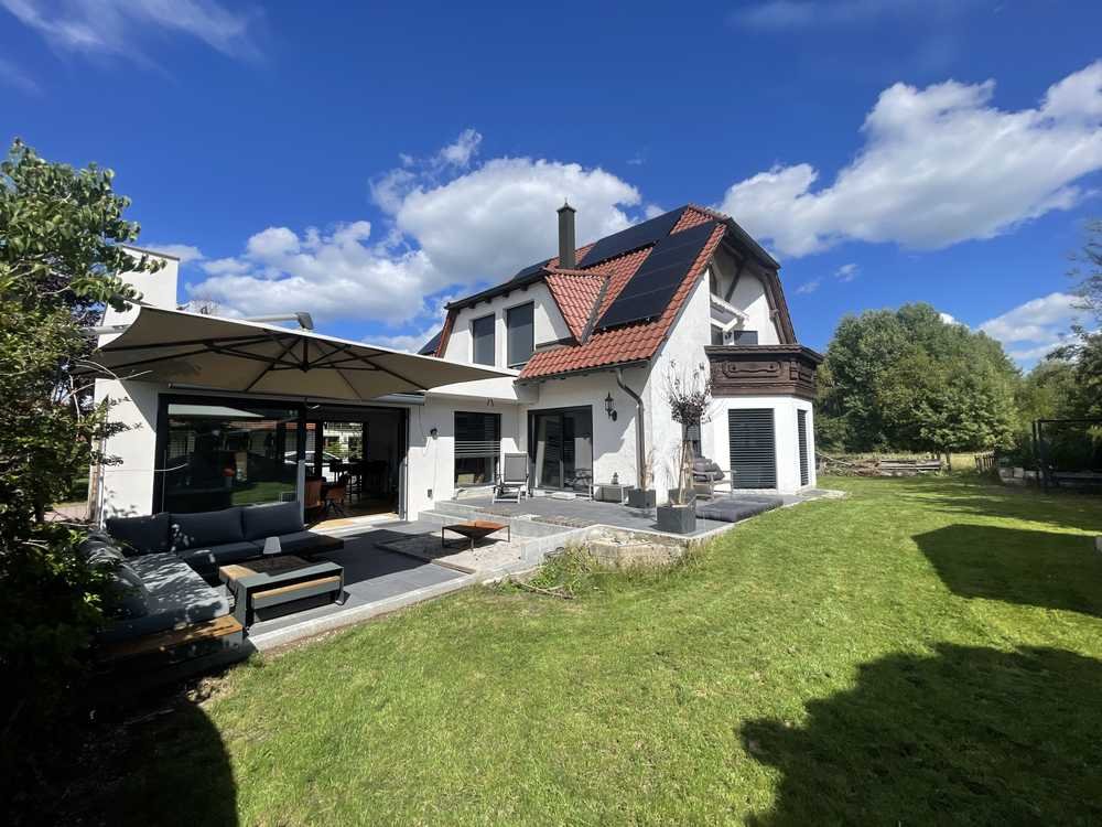 In traumhafter Lage von Mimberg, idyllisch am Ortsrand in einer verkehrsberuhigten Spielstraße (Sackgasse), befindet sich dieses exklusive Einfamilienhaus. Es verbindet modernes Wohnen, zeitlose Architektur und Naturverbundenheit mit der Nähe zur Stadt – eine seltene Kombination.