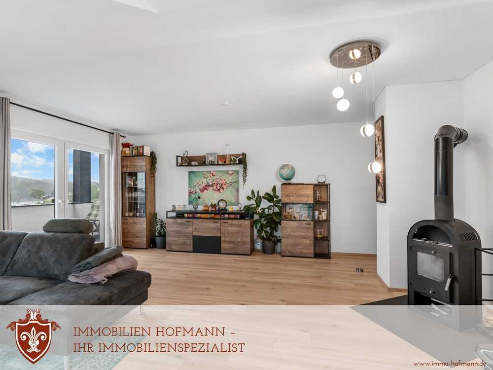 Der lichtdurchflutete Wohnbereich mit direktem Zugang zum Balkon bietet eine herrliche Aussicht ins Grüne. Ein besonderer Pluspunkt ist der vorhandene Kaminanschluss – inklusive hochwertigem Schwedenofen, der für behagliche Wärme und gemütliche Abende sorgt.