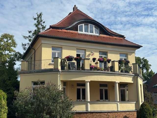 Diese attraktive Villa – ein Spätwerk des berühmten Baumeisters Otto Zapfe – wurde 1928 erbaut. Sie besteht aus drei Einheiten – Hochparterre, Obergeschoss und Dachgeschoss - jede in sich abgeschlossen sowie einem Kellergeschoss. Seitlich zum Haus wurden 5 Pkw-Stellplätze geschaffen.