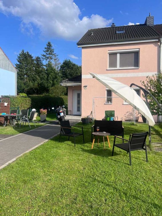Terrasse, Garten mit Seitengrundstück mit großem Vorgarten