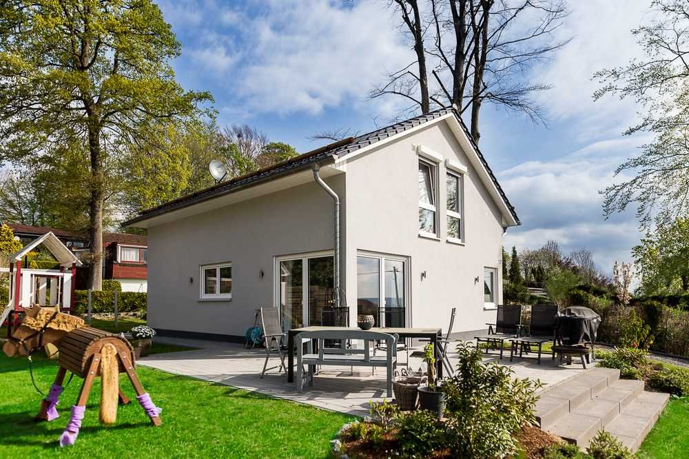 Ein Zuhause, das den Familienalltag spürbar leichter macht und jeden Tag mit kleinen Wohlfühlmomenten belohnt: Dieses geplante Einfamilienhaus vereint durchdachte Raumaufteilung mit warmem Wohngefühl. Bereits der Eingangsbereich empfängt Sie mit Platz für Garderobe und Kinderwagen; das Gäste-WC liegt praktisch nahebei. Herzstück ist der helle Wohn- und Essbereich mit großen Fensterflächen und direktem Zugang in den Garten – hier entstehen Lieblingsplätze: Frühstück auf der Terrasse, Geburtstagskaffee mit Freunden, Sommerabende, an denen die Kinder noch barfuß über den Rasen toben. Die Küche lässt sich je nach Lebensstil offen anbinden oder bewusst als abgeschlossener Raum planen – ideal, um in Ruhe zu kochen, Ordnung zu halten und dennoch kurze Wege zum Familientisch zu haben.