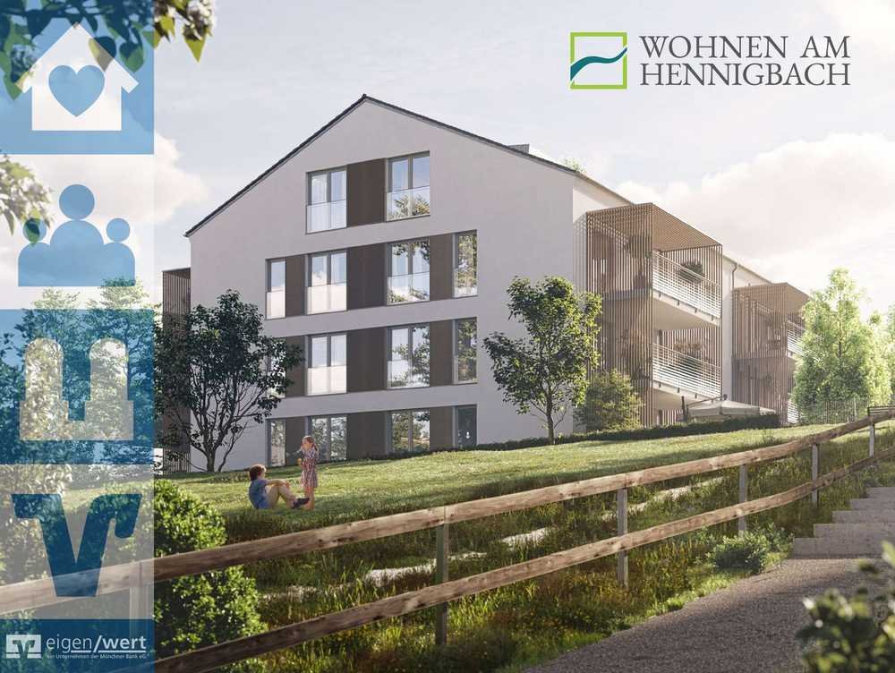 Das Projekt AM HENNIGBACH entsteht in Bestlage von Markt Schwaben, östlich von München. Das zeitlos elegant gestaltete Mehrfamilienhaus mit 28 modernen 2- bis 4-Zimmer-Wohnungen und Wohnflächen von ca. 55 bis ca. 120 m² erfüllt die Anforderungen an einen klimafreundlichen Neubau (Effizienzhaus-Stufe 40) und bietet damit hervorragende Finanzierungskonditionen.