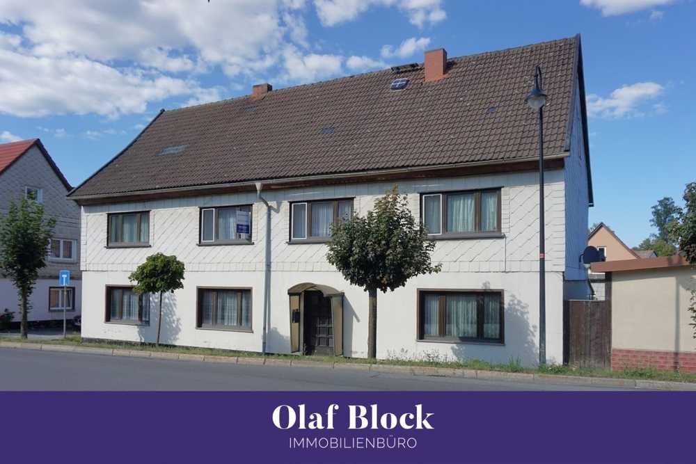 Hier finden ein bis zwei Familien Platz zum Wohnen. Im Erdgeschoss warten drei Zimmer, eine große Küche mit Abstellraum und der Heizungsraum auf die neuen Besitzer. Im Obergeschoss befinden sich sechs Zimmer, eine große Küche und zwei Duschen mit WC im Anbau. Bei schlechtem Wetter nutzen Sie den kleinen Wintergarten am Haus. Für PKW und Hobby bieten drei Garagen und das Nebenegelass viel Platz und Möglichkeiten. Das Grundstück hat eine separate Zufahrt. Besichtigung nur nach vorheriger Terminabsprache über unser Büro.