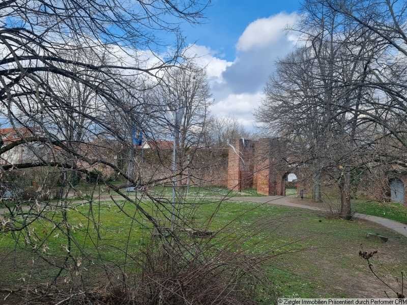 4-Zi.-Maisonette-Wohnung, Wohnküche mit Einbauküche, Tageslicht-Bad, Diele, große Terrasse (ca. 37 m²) mit idyllischem Blick ins Grüne und auf die benachbarte Stadtmauer.