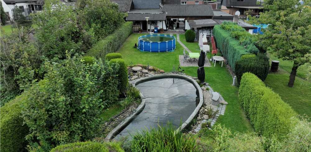 Der großzügige Garten mit einer gepflegten Teichanlage (1,70 - 1,80 m Tiefe - Nutzbar als Schwimmteich) und einem gemütlichen Gartenhaus lädt zum Verweilen ein. Ein separater Party- und Hobbyraum bieten zusätzlichen Platz für Freizeitaktivitäten oder Feiern. Durch die Doppelgarage mit elektrischen Rolltoren und den weitläufigen Außenbereich stehen ausreichend Stellflächen für Fahrzeuge und individuelle Gestaltungsmöglichkeiten zur Verfügung.