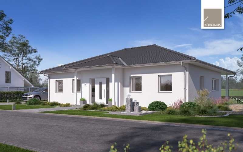 Der offen gestaltete Walmdach-Bungalow Kalea unterteilt sich geschickt auf knapp 130 Quadratmetern Wohnfläche. Schlafzimmer, Gäste- oder Arbeitszimmer, Wohn-/Essbereich, der Hauswirtschaftsraum und die Küche werden durch die Diele verbunden. Entlang der Mittelachse des Bungalows führt der freie Blick on der Haustür direkt in den Garten.