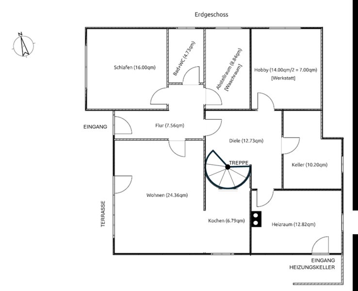 Die großzügige Hauptwohnung im Obergeschoss umfasst ca. 123 m² Wohnfläche, während die Einliegerwohnung im Erdgeschoss mit ca. 57 m² als separate Einheit nutzbar ist – ob für Mehrgenerationenwohnen, zur Vermietung, als Homeoffice, oder kreativer Arbeitsbereich.