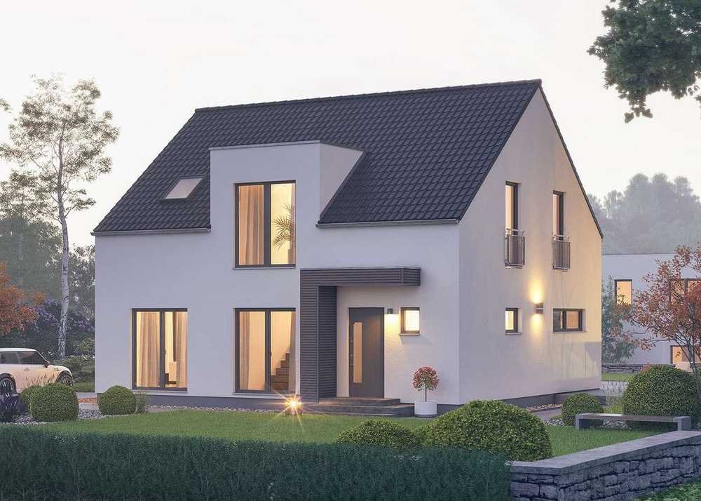 Bei diesem puristisch gestalteten Haus mit rund 182 m² Nettogrundfäche unterstützen die flexiblen Grundrisse das Wohnen nach eigenen Vorstellungen. Optional mit spannenden Architektur-Extras - zum Beispiel ein zweigeschossiger, mittig integrierter Sonnenerker, eine Erkererweiterung im Erdgeschoss oder ein schützendes Hauseingangselement - betonen das Äußere des Hauses und führen Form und Funktion harmonisch zusammen. Raumhohe Verglasungen, ein großer Wohn-Ess-Bereich, der sich zum Garten öffnet, sowie klare Raumzuschnitte sorgen für helles Wohlfühlwohnen auf allen Ebenen - und dokumentieren die unaufdringliche Großzügigkeit und den besonderen Stil dieses Haustyps.