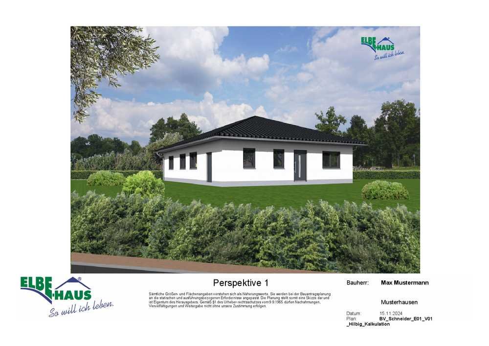 Dieses innovative Elbe-Haus® wird in massiver Bauweise von qualifiziertem Fachpersonal errichtet. Wir planen und projektieren nach Ihren Vorstellungen und Wünschen und somit ist wirklich jedes Haus einzigartig. Beachten Sie bitte, dass das abgebildete Haus lediglich ein Bebauungsbeispiel ist. Das Grundstück kann unter Berücksichtigung der örtlichen Bauvorschriften mit Ihrem Wunschhaus von Elbe-Haus® errichtet werden.