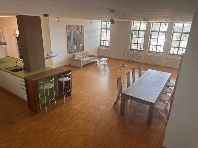 Die Loftwohnung besticht durch eine innenarchitektonische Extravaganz und ausgefallenen Interior-Details sowie großflächigen und hochwertigen Fenstern.