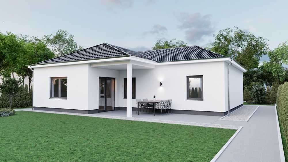 Schicker Winkelbungalow, Neubau, inkl. Bodenplatte, FBH, A+, PV, Lüftung