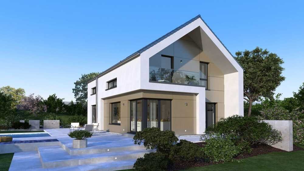 Dieses Haus begeistert mit klassischer Eleganz, moderner Architektur und liebevoll durchdachten Details, die den Alltag zum Genuss machen. Schon beim Betreten spüren Sie die besondere Atmosphäre: Die offene Treppe im Eingangsbereich trennt Gäste-WC und Hauswirtschaftsraum stilvoll vom restlichen Wohnbereich. Ein praktisches Büro schafft zudem den perfekten Raum für konzentriertes Arbeiten - ideal auch fürs Homeoffice.