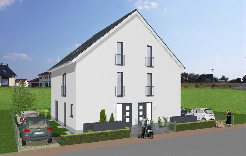 Diese beiden giebelseitig getrennten Doppelhaushälften werden in Massivbauweise erstellt und mit moderner Heizungs- und Lüftungstechnik ausgestattet.