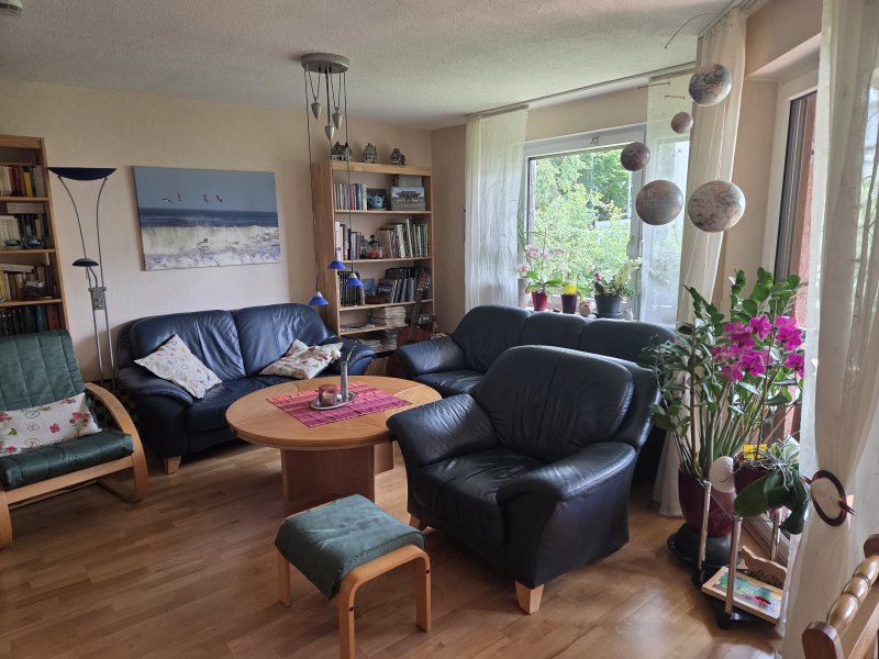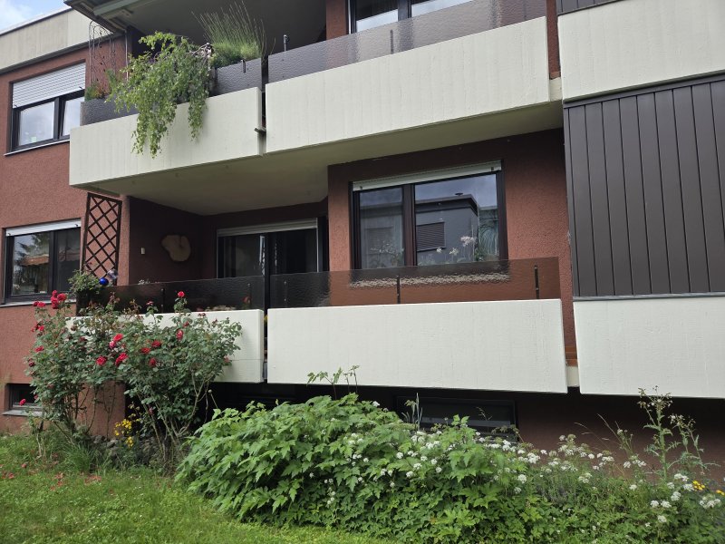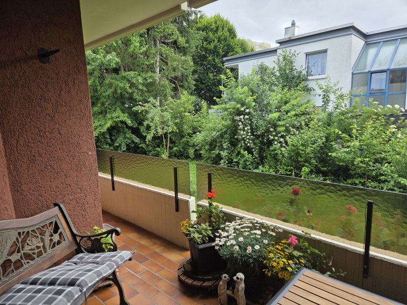 Schöne Wohnung im Hochparterre eines 6-Parteien-Hauses in Sindelfingen-Hinterweil; großer Garten um das Haus; sehr ruhige Lage in 2. Reihe abseits der Durchgangsstraßen, im Sommer dank Balkonüberdachung angenehm kühl, im Winter bei direkter Sonneneinstrahlung hell und warm; großzügiger, überdachter Südbalkon mit kleinem Abstellraum; abschließbare Tiefgaragenbox (Hausgeld 32,00 €)