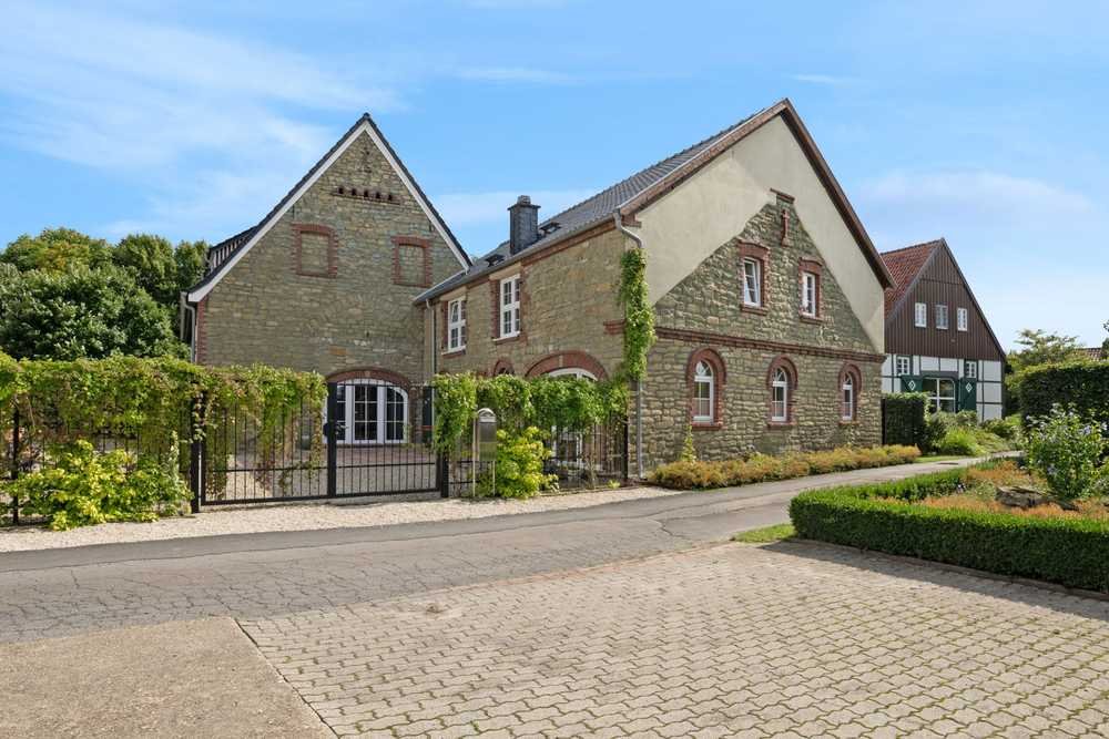 Zum Kauf steht ein eindrucksvoller, restaurierter Resthof in Wickede / Schlückingen, eingebettet in eine idyllische Landschaft und mit einer reichen Geschichte, die bis ins Jahr 1820 zurückreicht. Der Hof ist ideal zur Pferdehaltung geeignet und wurde so auch genutzt, nachdem die Restaurierungsphase von 2016-2018 abgeschlossen war. Diese einzigartige Immobilie, die eine Grundstücksfläche im Hofbereich von ca. 3.120 m² und zusätzliche Nutz- und Weidefläche von rd. 8.556 m² bietet, vereint historischen Charme mit modernem Komfort und wurde umfassend saniert und gepflegt.