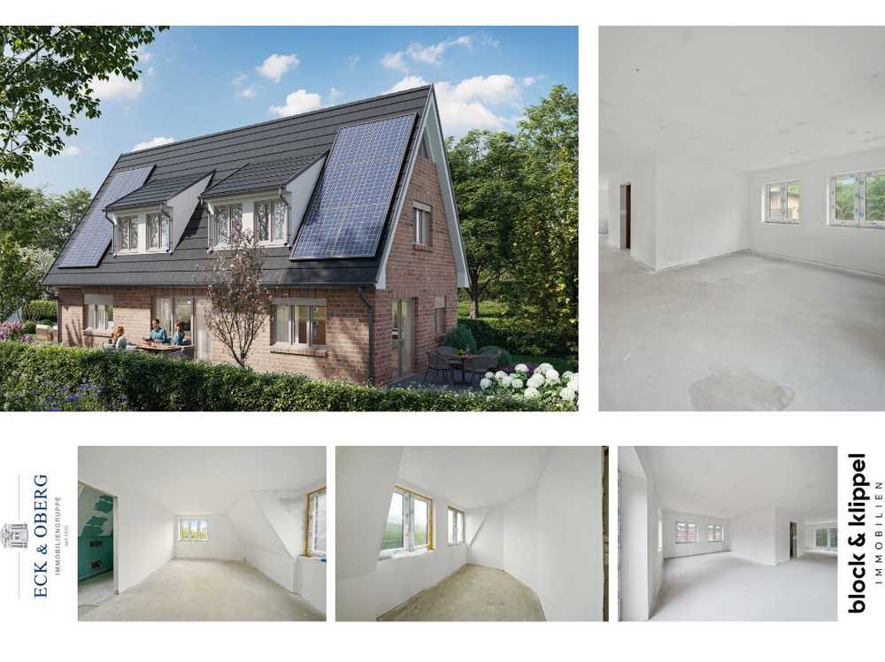 Auf rund 178,62 m² Wohnfläche bietet das Haus fünf Zimmer auf einem Grundstück von ca. 356 m². Im Erdgeschoss empfängt Sie ein großzügiger Wohn- und Essbereich mit raumhohen Fensterflächen und Zugang zu drei Terrassen in Süd-, West- und Ostausrichtung. Die offene Küche mit zentralem Kochblock schafft eine einladende Atmosphäre für Familie und Gäste. Ein Gäste-WC komplettiert diese Ebene.