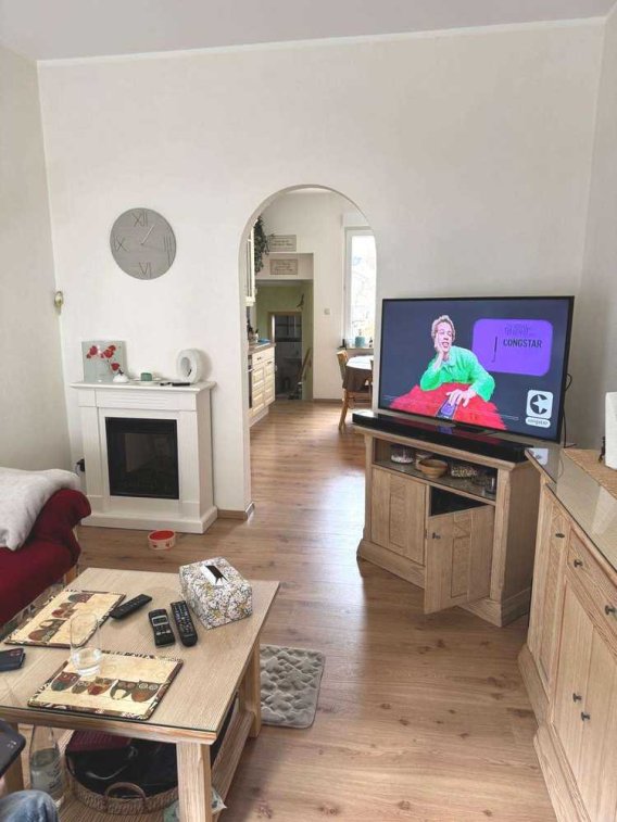 Auf rund 120 m² Wohnfläche erwarten Sie fünf gut geschnittene Zimmer, eine geräumige Küche, ein helles Wohnzimmer sowie ein Tageslichtbad mit Wanne und Dusche. Ein zusätzliches Gäste-WC sorgt für praktischen Komfort im Alltag. Der große Kellerraum bietet viel Stauraum für Hobbys, Vorräte oder Fahrräder.