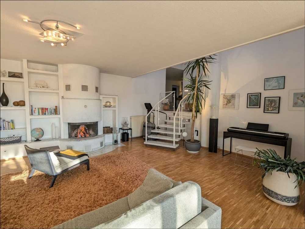 Die moderne Küche mit Miele-Geräten und Granitplatte führt direkt zur großen Terrasse – perfekt für gemeinsames Kochen und gemütliche Abende mit Familie und Freunden. Das Wohnzimmer liegt einige Stufen tiefer, wodurch der Split-Level-Charakter charmant betont wird, und öffnet sich zu einer zweiten Terrasse mit Blick ins Grüne. Ein offener Kamin sorgt in der kühleren Jahreszeit für behagliche Wärme. Der private Garten ist vollständig eingefriedet und bietet absolute Ruhe und Privatsphäre – ein seltener Luxus, der Ihnen ein echtes Haus-im-Haus-Gefühl vermittelt.