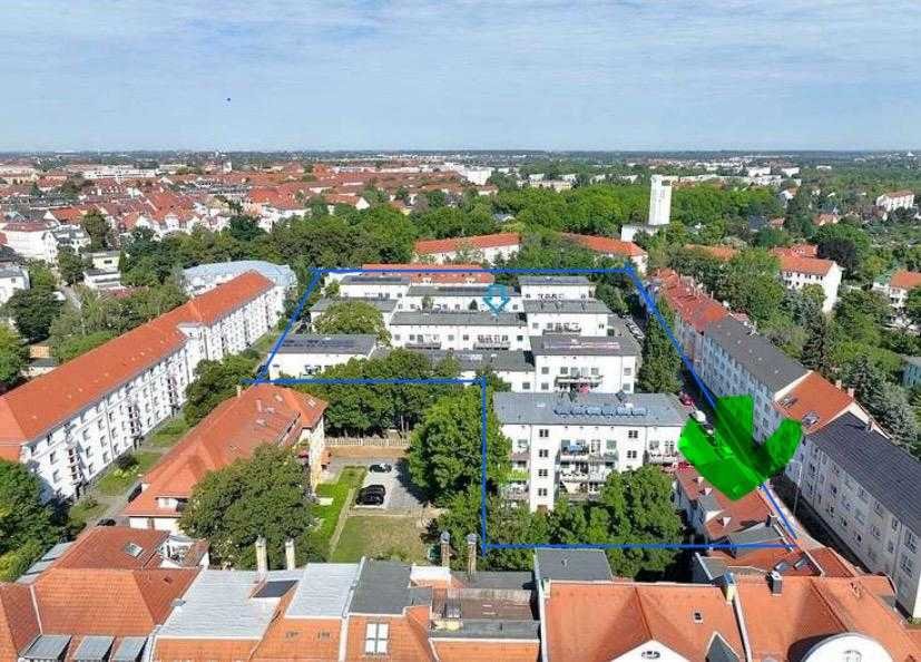Die Wohnung liegt im Hochparterre eines gepflegten Mehrfamilienhauses aus den 1930er Jahren in der ruhigen Adolph-Menzel-Straße 11. Der Zugang erfolgt über einen begrünten Innenhof – ideal für alle, die Ruhe und Privatsphäre schätzen.