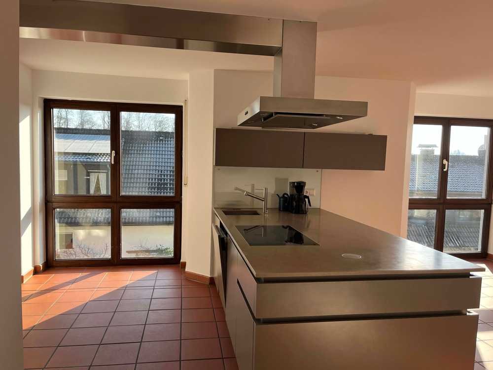 Schon beim Betreten des Hauses spürt man die besondere Raumwirkung: Licht, Weite und eine fließende Verbindung zwischen Wohnen, Essen und Natur. Der offene Wohnbereich mit bodentiefen Fenstern gibt den Blick auf das Tal und die weitläufige Terrasse frei. Der gemütliche Kamin schafft eine behagliche Atmosphäre, während die moderne Einbauküche mit zentralem Kochblock den Mittelpunkt des Familienlebens bildet.