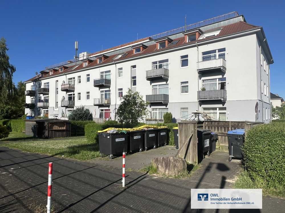 Diese Eigentumswohnung befindet sich im Dachgeschoss eines ehemaligen Kasernengebäudes bestehend aus insgesamt 38 Wohneinheiten. Die Wohnung verfügt über 3 Zimmer sowie einen Balkon auf einer Wohnfläche von rund 84 m². Zusätzlich steht Ihnen im Keller des Hauses für weiteren Stauraum ein eigenes Abteil zur Verfügung. Ihr Fahrrad findet in dem vorhandenen Fahrradkeller seinen sicheren Abstellort. Für Ihr Auto ist ein Außenstellplatz vorhanden. Bei Bedarf kann ein weiterer Außenstellplatz zu einem geringen Aufpreis von 5.000,00 € zusätzlich erworben werden. Die Wohnung ist seit 2022 vermietet. Die Nachwirkfrist aufgrund genutzter öffentlicher Mittel läuft zum 31.12.2029 aus. Im Jahr 2000 ist das Gebäude grundlegend saniert worden. Weitere Instandhaltungsmaßnahmen sind im Laufe der Jahre getroffen worden, ein Reparaturstau besteht nicht. Das Mehrfamilienhaus befindet sich in einer verkehrsberuhigten Siedlungsstraße einer begehrten Wohngegend Lemgos. Schulen und Kitas sind in unmittelbarer Nähe. Auch Lebensmittelgeschäfte sowie die Innenstadt ist fußläufig gut zu erreichen. Es werden weitere Wohnungen des Mehrfamilienhauses in verschiedenen Größen zum Verkauf angeboten. Sprechen Sie uns gerne an!