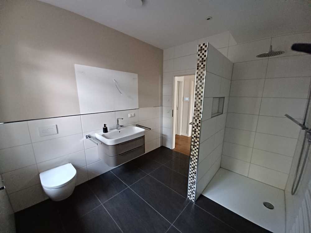 Ein modernes Gäste-WC mit Glasdusche, sowie eine praktische Abstellkammer runden