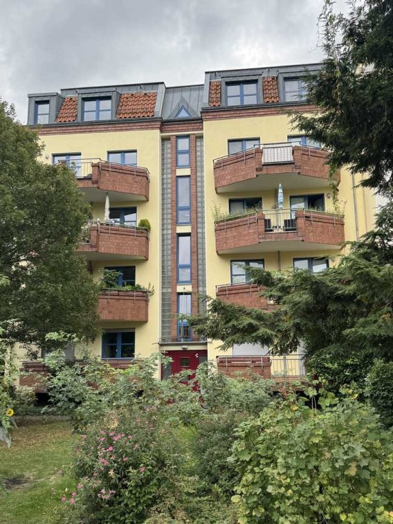 Die Wohnung befindet sich im Dachgeschoss eines im Jahr 1998 errichteten Neubaus und liegt sehr ruhig in der schönen und baumbestandenen Buchholzer Strasse nahe des beliebten Brosepark.