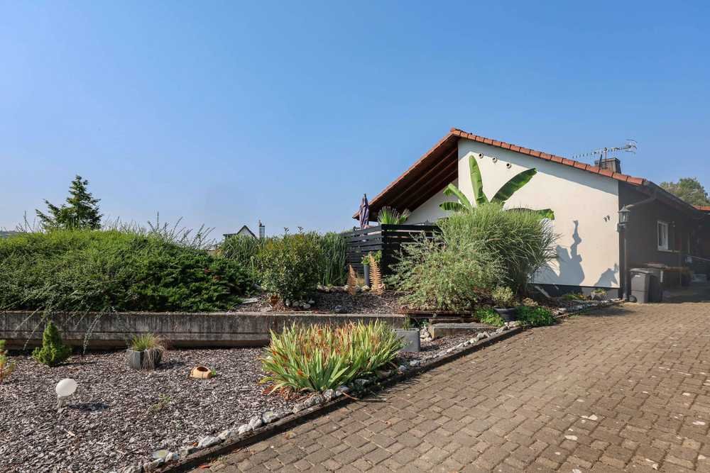 Die Zufahrt endet an einer Einzelgarage mit zusätzlichem Nutzraum.