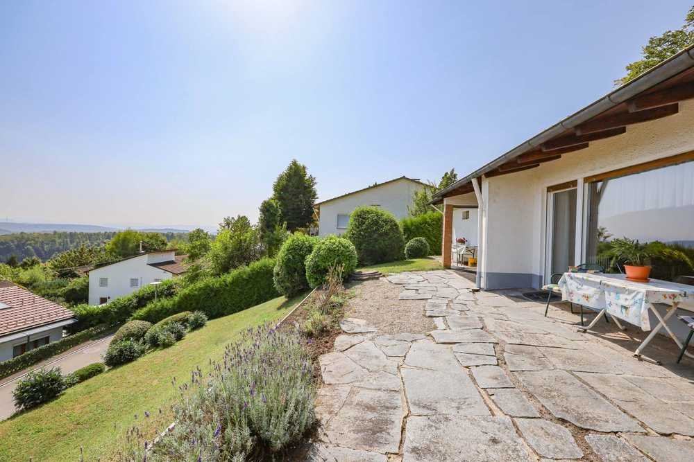 Die Immobilie überzeugt durch ihre solide Bauweise, eine durchdachte Raumaufteilung und eine einmalige Lage. Das Herzstück des Hauses bildet das weitläufige Wohn- und Esszimmer im Erdgeschoss, welches durch große Fensterflächen lichtdurchflutet ist und direkten Zugang zur sonnigen Terrasse bietet. Von hier aus genießen Sie einen atemberaubenden Panoramablick über die Landschaft des Hägelbergs. Für gemütliche Stunden im Freien sorgt zudem ein überdachter Freisitz – perfekt für entspannte Sommerabende oder gesellige Familienmomente.