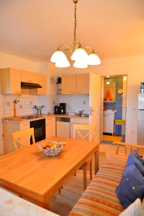 DIESER IST AUSGESTATTET MIT EINER EINBAUKÜCHE (4-PLATTEN-HERD, BACKOFEN, GESCHIRRSPÜLER, KÜHL/GEFRIERKOMBINATION), EINER KOMBINIERTEN ESS- UND SITZECKE MIT URIGER WIENERBANK SOWIE EINEM FLACHBILDFERNSEHER MIT SAT-ANSCHLUSS. VOM WOHNBEREICH AUS GELANGT MAN INS KINDERZIMMER MIT EINEM ETAGENBETT (2 METER LÄNGE) SOWIE EINEM WEITEREN EINZELBETT MIT 1,80 METER LÄNGE.