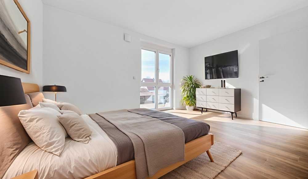 Diese moderne Doppelhaushälfte mit ihrer durchdachten Raumaufteilung und hochwertiger Ausstattung bietet Ihnen und Ihrer Familie ein ideales Zuhause. Das Erdgeschoss besticht durch einen offenen Wohn-, Ess- und Kochbereich, ein Gäste-WC sowie einen praktischen Abstellraum. Große Fenster sorgen für viel Tageslicht und einen direkten Zugang zur gemütlichen Terrasse und zum Garten.