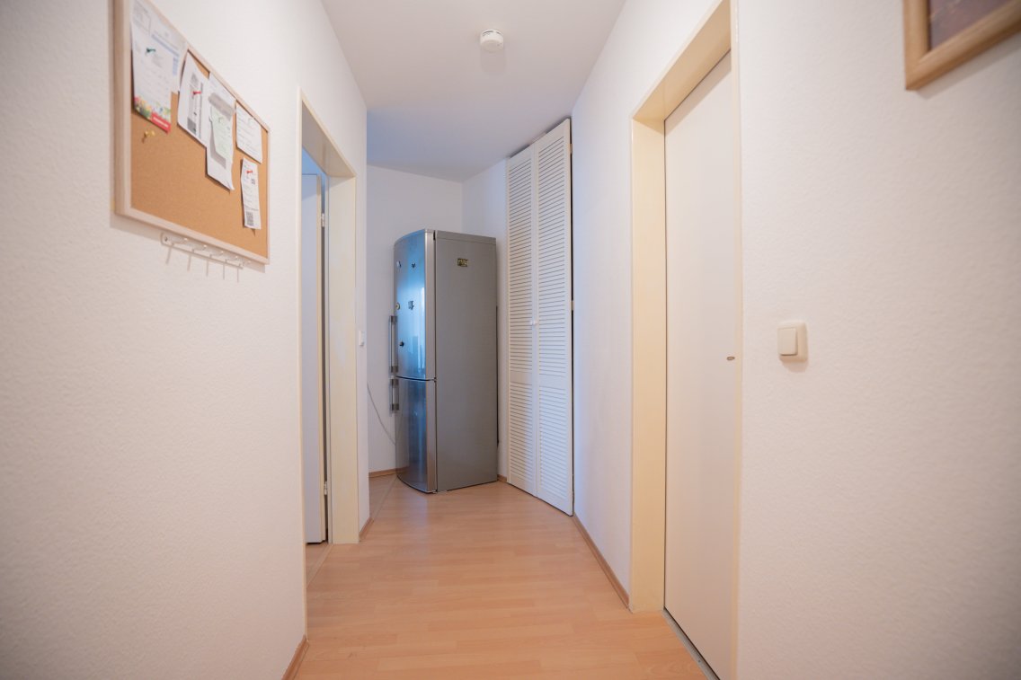 Der Wohnbereich ist mit gepflegtem Laminatbodenausgelegt, der für eine behagliche Wohnatmosphäre sorgt und sich leicht reinigen lässt.