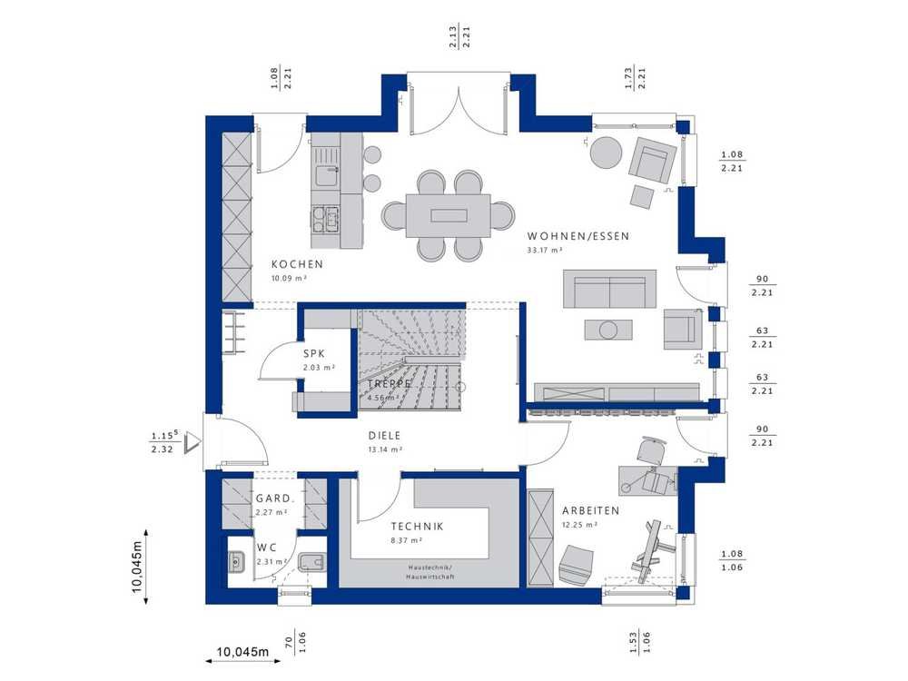 Ein freistehendes EINFAMILIENHAUS mit Bodenplatte, großem Fensterpaket , Querhaus mit Satteldach und 2-geschossigem Giebel-Erker von BIEN-ZENKER-HAUS auf einem Grundstück mit 487 m²