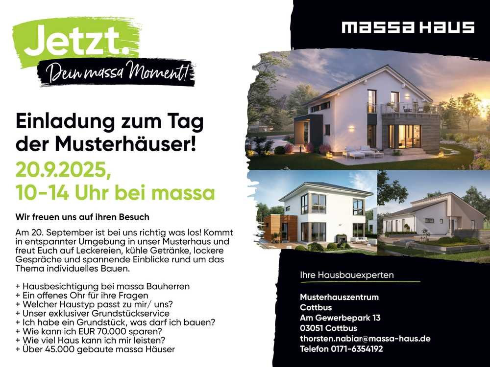 Musterhaustag bei Massahaus Cottbus am 20.09.2025 von 10-14Uhr