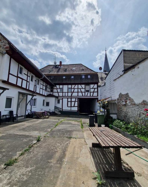 Das zu verkaufende 11-Parteienhaus befindet sich auf einem 537m² großen Grundstück in zentraler und begehrter Lage von Groß-Zimmern. Das Wohnhaus entstammt ca. dem Jahr 1870 und wurde 1935 um einen Anbau erweitert. Die Baujahre des Nebengebäudes mit Doppelgarage, sowie des neueren Anbaus daneben sind unbekannt. Die voll vermietete Wohnanlage verfügt über drei Etagen mit insgesamt ca. 448m² Wohnfläche. Weitere Nutzflächen finden sich im Keller, sowie dem Nebengebäude. Hier parken bis zu zwei Autos witterungsgeschützt in der integrierten Doppelgarage. Abgerundet wird die Immobilie von einem gepflasterten Innenhof samt Zugangstor. Ein Großteil der Anlage wurde in Fachwerktechnik errichtet.