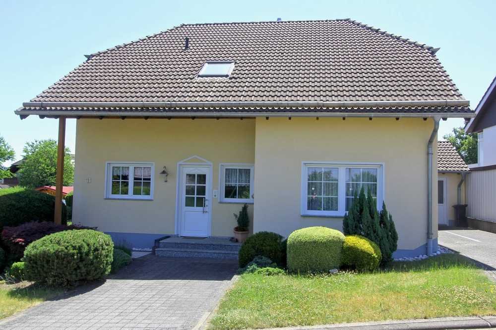 In der Fichtenstraße, am südlichen Ortsrand gelegen, wurde im Jahr 1998 das abgebildete Wohnhaus errichtet, dessen künftiger Eigentümer ob des herrlichen Gartens, der gelungenen Raumaufteilung, der vorbildlichen baulichen Ausführung und des beeindruckenden Naturblicks zu beneiden ist. Insgesamt ca. 189,49 m² Wohnfläche stehen dem Eigentümer zur Verfügung. Diese unterteilt sich auf je eine Wohnung in Erd- und Dachgeschoss. Die Wohnung im Erdgeschoss (ca. 103,38 m²) besteht aus dem offenen Wohn- und Essbereich mit Esserker und Terrassenausgang, Küche, 2 Schlafzimmern, Bad (Wanne, Dusche, WC) und Hauswirtschaftsraum. Die Dachgeschosswohnung (ca. 86,11 m² Wohnfläche) ist in den geräumigen Wohn-/Ess- und Küchenbereich, 2 Schlafzimmer und Bad aufgeteilt.