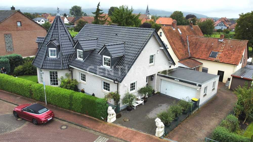 Willkommen in Ihrem neuen Zuhause! Auf einem großzügigen Grundstück von etwa 540 m² erwartet Sie ein einladendes Zuhause mit einer Wohnfläche von ca. 220 m², welche die großzügigen Räume und die spannende Architektur in perfekter Harmonie vereint. Das Objekt zeichnet sich besonders durch den imposanten Turm aus, welcher im Erdgeschoss sowie in der 1. Etage ein ganz besonderes Turmzimmer bereit hält.