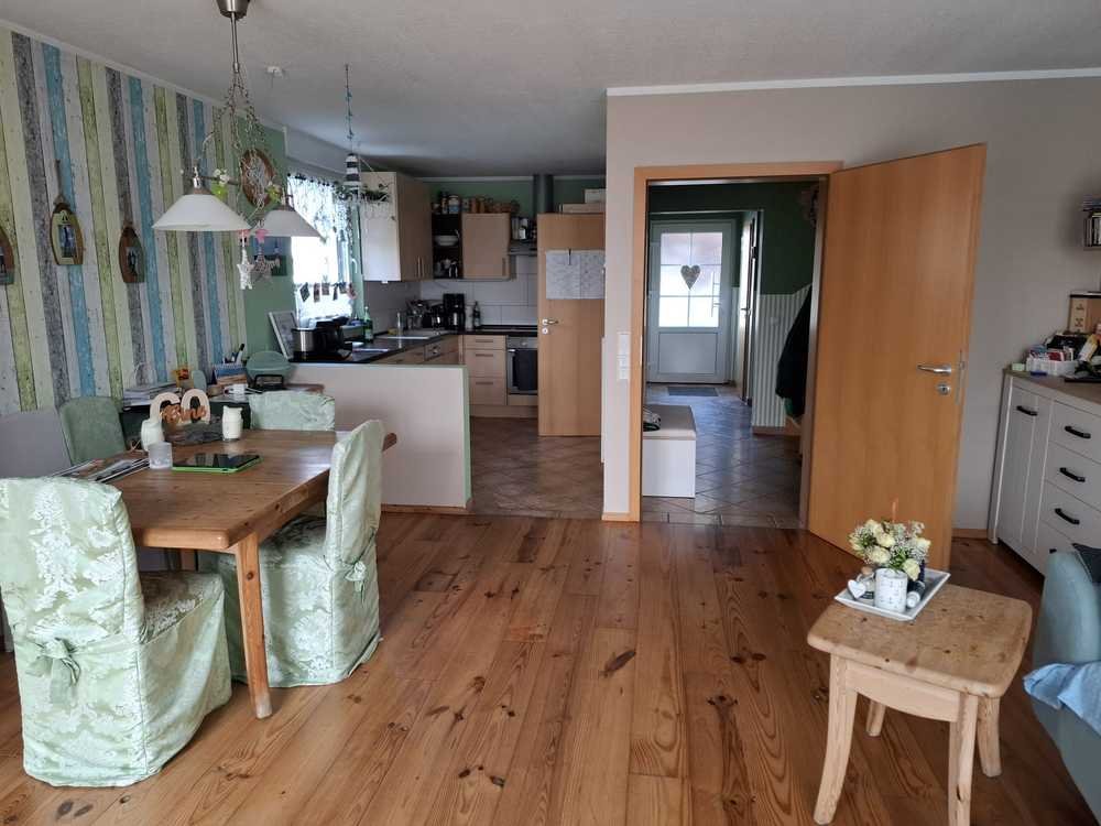 Im Erdgeschoss befindet sich ein Wohn/Essbereich mit einer offenen gehalten Küche sowie der Zugang zur großzügigen Terrasse mit dem herrlich angelegten Garten. Weiterhin befindet sich ein Gäste-WC, der Hauswirtschaftsraum ( kein Keller vorhanden ) und ein Dielenbereich.
