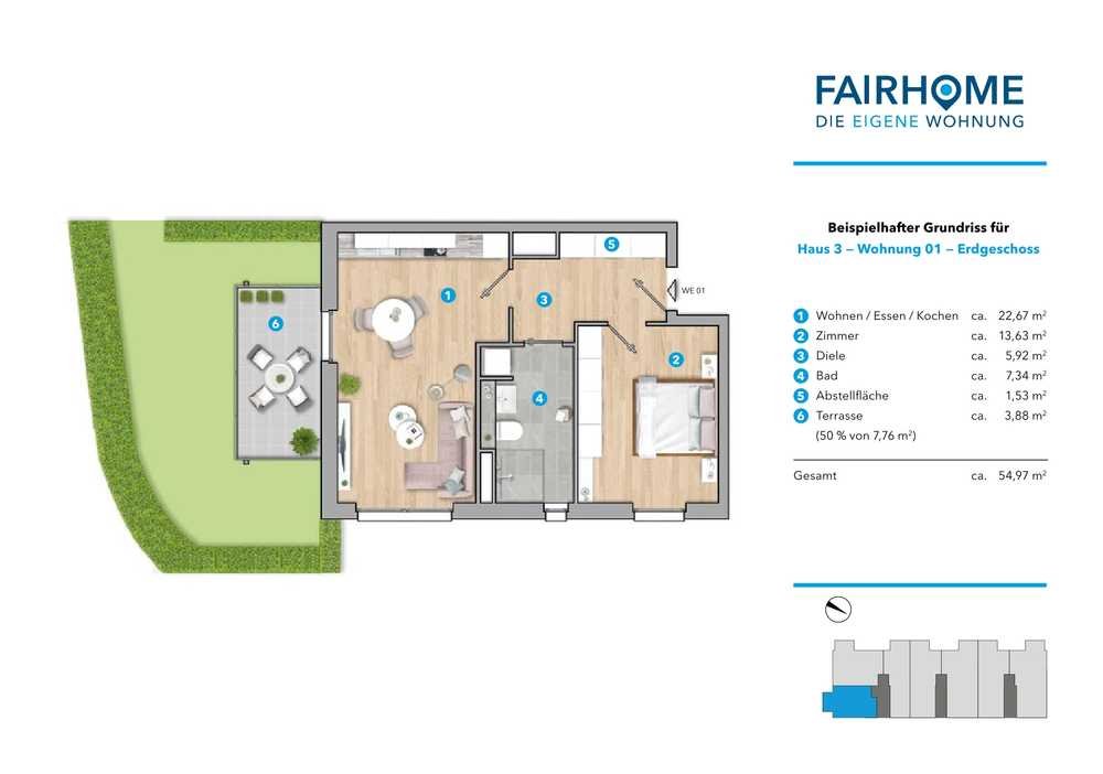 „Am Glessener Feld“ entstehen attraktive und nachhaltige FAIRHOME Wohnungen mit unterschiedlichen Raumangeboten. Ganz gleich ob Singles, Paare oder Familien mit Kindern: Die Eigentumswohnungen von FAIRHOME bieten Wohnqualität zu einem exzellenten Preis-Leistungs-Verhältnis für jede Situation und Lebensphase.