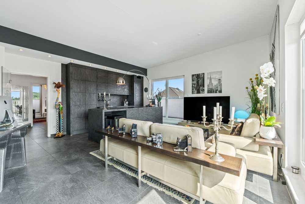 Ein Abstellraum bietet durchdachten Stauraum und Struktur im Alltag. Einer der Höhepunkte dieses Domizils ist zweifellos die große Dachterrasse mit Süd-West-Ausrichtung: Hier beginnen und beenden Sie den Tag mit faszinierenden Lichtstimmungen und einem Panorama vom Siebengebirge bis zur Wahner Heide.