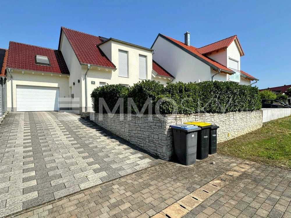 Dieses 2014 erbaute Einfamilienhaus am ruhigen Stadtrand von Sennfeld bietet auf zwei Etagen insgesamt ca. 184 m² Wohnfläche und überzeugt durch eine durchdachte Raumaufteilung für Familien. Im Erdgeschoss befinden sich das Wohnzimmer mit offenem Küchenbereich inklusive Einbauküche, ein Flur mit Einbauschrank, ein Gäste-WC sowie ein Hauswirtschaftsraum. Von hier aus gelangt man auf zwei Terrassen, die zum Entspannen im Garten einladen. Im Dachgeschoss liegen das Schlafzimmer, zwei Kinderzimmer sowie ein Studio oder Büro, alle mit Laminatboden, sowie ein großzügiges Bad mit Badewanne und separater Dusche. Der gut isolierte Dachboden bietet zusätzlichen Stauraum.
