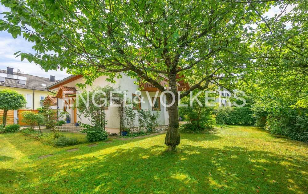 Der naturverbunden angelegte Garten mit altem Baumbestand bildet eine grüne Oase der Ruhe und Geborgenheit. Er bietet großzügigen Raum für Familie und vielfältige Freizeitaktivitäten im Freien – und ist dabei dennoch pflegeleicht.