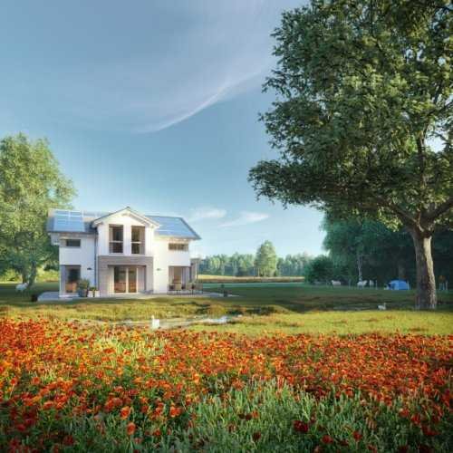 Die großen Fenster und die klare Liniensprache verleihen diesem Haus sein elegant-modernes Gesicht. Unabhängig von Dachform, Designpaket und Fassadengestaltung als Putz- oder Klinkerfassade zeigt sich das Evolution 154 immer äußerst repräsentativ.