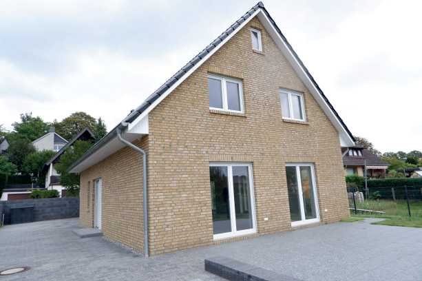 Das Einfamilienhaus wurde ca. 2022 in konventioneller Massivbauweise mit gelbem Verblendmauerwerk und Satteldach erstellt. Das Satteldach ist mit dunklen Tonpfannen eingedeckt.