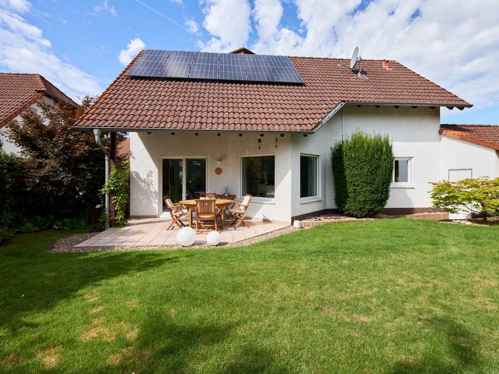 Wir freuen uns sehr, Ihnen ein neuwertiges Einfamilienhaus präsentieren zu dürfen, das durch seine durchdachte Raumaufteilung und eine helle, freundliche Atmosphäre besticht. Schon beim Betreten empfängt Sie ein einladender Eingangsbereich, der nicht nur mit einem großzügigen Garderobenschrank ausgestattet ist, sondern auch ein modernes Gäste-WC bietet. Von hier aus gelangen Sie direkt in das offen gestaltete Esszimmer, das als Herzstück des Hauses zum Verweilen und Zusammensein einlädt. Die angrenzende Küche ist ein stilvoller Mittelpunkt des Hauses und überzeugt mit einer hochwertigen Ausstattung, die keine Wünsche offen lässt. Die maßgefertigte ebenfalls neuwertige Einbauküche vereint modernes Design mit durchdachter Funktionalität. Hochwertige Geräte wie ein Dampfgarer, ein Induktionsherd mit Wok-Fläche von Küppersbusch und ein Doppelbackofen bieten ideale Voraussetzungen für kulinarische Kreativität. Eine angrenzende Abstellkammer sorgt zudem für zusätzlichen Stauraum und unterstreicht den praktischen Komfort dieser exklusiven Küche. Vom Essbereich führt der Weg weiter in das behagliche Wohnzimmer, das mit seiner gemütlichen Ausstrahlung zum Entspannen einlädt. Ein echtes Highlight ist der stilvolle Anbau mit edlem Holzboden, einer modernen Steinwand und bodentiefen Fenstern, der ein unvergleichlich lichtdurchflutetes Wohngefühl bietet. Im Obergeschoss erwarten Sie ein geschmackvolles Badezimmer, das in 2015 modernisiert wurde und mit hochwertigen Armaturen von Grohe und Keuco ausgestattet ist. Ein geräumiges Elternschlafzimmer sowie zwei gut geschnittene Kinder- bzw. Arbeitszimmer, die vielfältige Nutzungsmöglichkeiten bieten, runden dieses Geschoss ab. Auch der Außenbereich lässt keine Wünsche offen: Eine sonnige Terrasse lädt zu entspannten Stunden im Freien ein, während der liebevoll angelegte Garten mit charmantem Freisitz der perfekte Ort für laue Sommerabende ist. Für Ihre Fahrzeuge stehen eine Garage mit praktischer Wallbox für Elektrofahrzeuge sowie zwei weitere Stellplätze direkt vor dem Haus zur Verfügung, was den Komfort dieser Immobilie zusätzlich unterstreicht. Die moderne Energieversorgung über Photovoltaik und Solar unterstützen sowohl die Heizung als auch die Warmwasseraufbereitung. Zusammen mit den in 2014 erneuerten Fenstern und der Haustüre ist damit für nachhaltige und zukunftsorientierte Wohnqualität gesorgt. Wir laden Sie herzlich ein, sich bei einer persönlichen Besichtigung selbst von den Vorzügen dieses besonderen Hauses zu überzeugen.